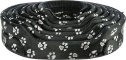 De Trixie Mand Jimmy Ovaal Zwart Met Pootprint 44 x 35 cm is een zachte hondenmand met opstaande rand en lage instap, met schuimrubber vulling, wendbaar kussen en slipvaste onderkant. Deze mand biedt jouw hond een fijne plek om in weg te kruipen. Mand Jimmy heeft een opstaande rand met schuimrubber vulling, bekleed met zacht pluche voor meer comfort en een veilig gevoel. De lage instap zorgt ervoor dat ook honden die kleiner zijn of slecht ter been zijn gemakkelijk de mand in kunnen stappen. De mand is voorzien van een wendbaar kussen en een slipvaste onderkant. Hierdoor wordt voorkomen dat de mand verschuift bij het in- en uitstappen.
