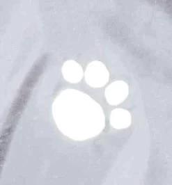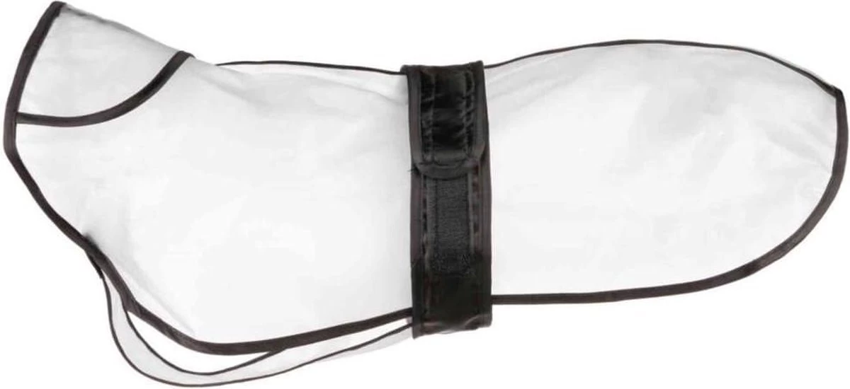 Materiaal: PVC Kleur: transparant en zwarte randen Maat: M Lengte: 46 cm Omvang buik: 46 – 66 cm Met slabbetje en extra staartlus Met reflecterende potenprint Met klittenbandsluiting Met een ingebouwd riemgat Waterafstotend