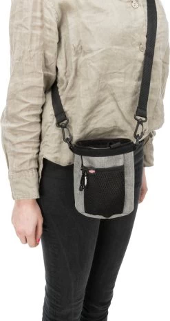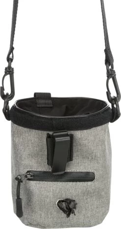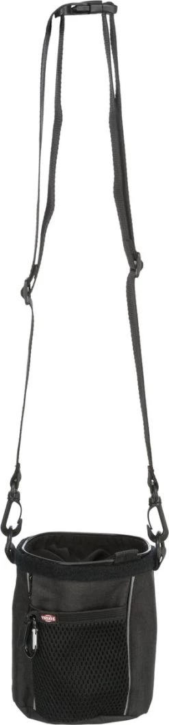 Het Trixie Snackzakje Multi Twist Assorti 17 x 22 cm is een multifunctionele snackzak voor de hond, met regelbare draaisluiting, poepzakjeshouder en karabijnhaak, waterdicht. Dit handige snackzakje is van alle markten thuis! Uiteraard biedt dit handige tasje alle ruimte voor de beloningssnacks die jij op wandeling mee wil nemen voor jouw hond. Ideaal aan dit tasje is de handige twist off-sluiting. Door de stof strakker of losser in elkaar te draaien, reguleer je de toegang tot de inhoud. De sluiting kan geheel gesloten worden indien er even geen snacks gepakt hoeven te worden en beschermt dan ook tegen de regen. Hiernaast is dit handige zakje voorzien van een geïntegreerde poepzakjes-dispenser, zodat je ook jouw poepzakjes altijd bij de hand hebt zonder nog een extra houder mee te hoeven nemen. Aan de karabijnhaak maak je bijvoorbeeld een hondenfluitje of clicker vast, en in de buitenvakjes stop je loses spulletjes die je op de wandeling meeneemt. Met reflecterende buitenvakken die het tasje goed zichtbaar maken! Inclusief traploos verstelbare riem.