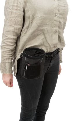 – Met vakjes en karabijnhaak ter bevestiging van bijvoorbeeld de clicker of hondenfluit