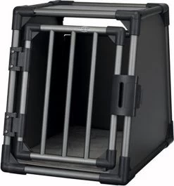 De Trixie Aluminium Vervoersbox Grafiet M 74 x 55 x 61 cm is een stevige, veilige vervoersbox voor in de kofferbak, om de hond mee op reis te nemen. Jouw hond gaat veilig overal mee naartoe met deze speciale vervoersbox voor in de achterbak van de auto. Deze vervoersbox is gemaakt van aluminium en zeer stevig, en bovendien voorzien van afgeschuinde kanten waardoor de kofferbak optimaal benut wordt. De hoge dichte wanden zorgen voor een schone kofferbak en de deur is voorzien van een veiligheidssluiting. De bijgeleverde ligmat is slipvast en wasbaar in de wasmachine tot 30 graden. Ook is de box zelf voorzien van klittenbandstroken aan de onderkant, waardoor hij stevig in de kofferbak blijft staan.