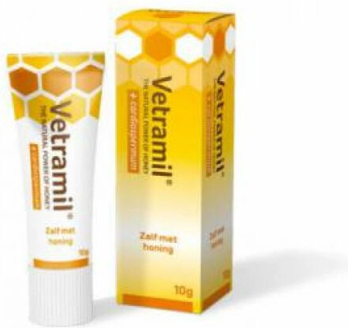 Honingzalf Vetramil; Zalf op basis van honing en etherische oliën.