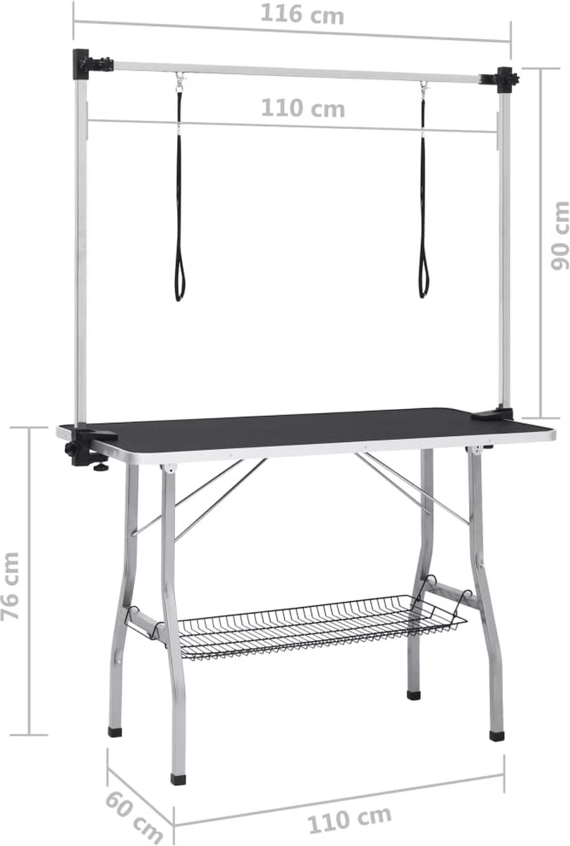 VIDAXL Hondentrimtafel Verstelbaar Met 2 Lussen En Opbergschap