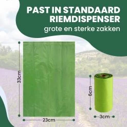 De hondenpoepzakjes hebben een totale afmeting van maar liefst 33 x 22 centimeter, wat ervoor zorgt dat ze een extra groot formaat hebben. Hierdoor kan je het gebruiken voor zowel grotere en kleinere behoeftes van je hond. Verder zijn de zakjes van dik materiaal en sterke naden, waardoor ze volledig waterdicht zijn. Dit maakt de slimme hondenpoepzakjes ook uitermate geschikt als je hond diaree heeft.
